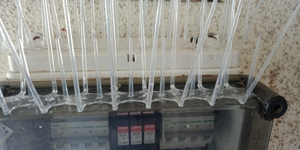 A bird control spike , also known as an anti-roosting spike or roost modification, is a device consisting of long, needle-like rods used for bird control. As a result, bird control spikes are used to deter these birds without causing them harm or killing them. Bird Spikes are a series of long, sharp wires jutting up from surfaces on which birds like to land and possibly nest. They are legal, common in many cities, and often recommended as a humane way to deter problem birds.